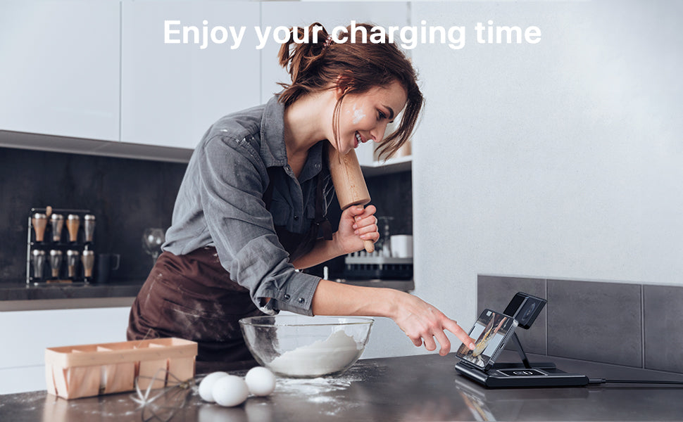 Metal objects may affect the coil induction, please ensure no metal parts on charging position for both of device and phone.It is recommended that the thickness of phone protector case ≤ 2.5mm(0.1inch).