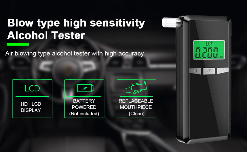 The breathalyser uses a high precision semiconductor alcohol sensor and can be used extensively to test friends in bars, family members at house parties.