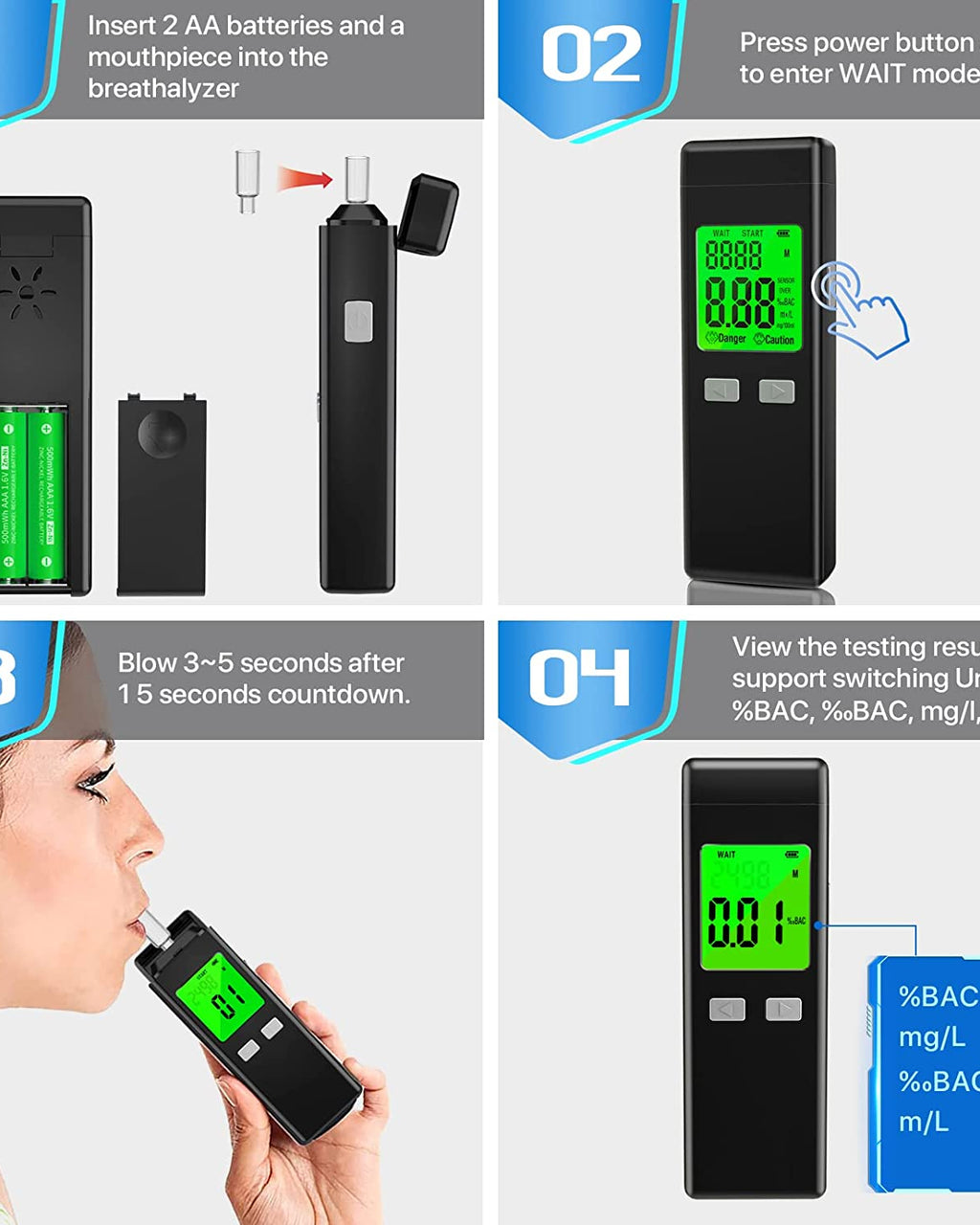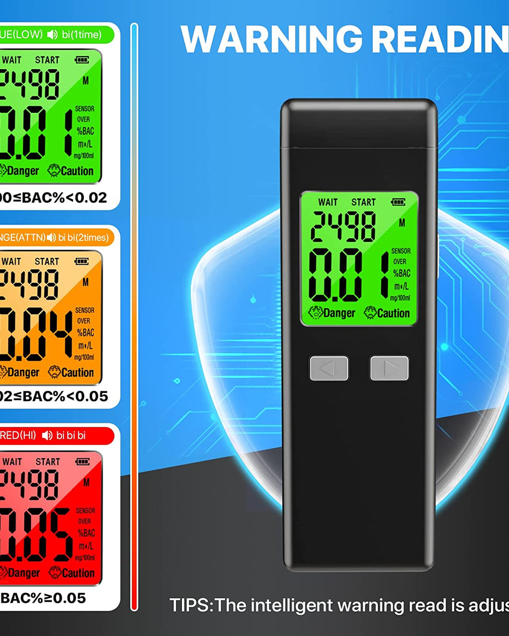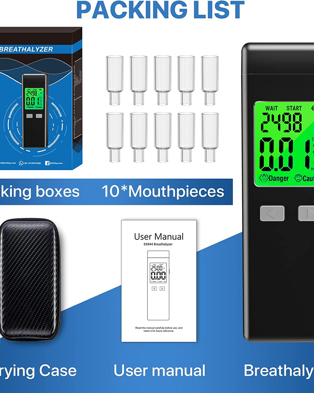 Professional-Grade Alcohol Tester with 10 Mouthpieces Memory and Warning Function for Personal and Professional Use