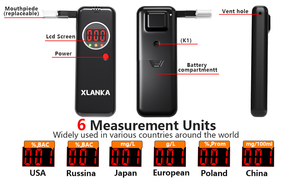 The alcohol measurement range is 0.00-0.20% BAC. The alcohol test result reaches the maximum value (0.20% BAC), and the value will not increase. Even if the amount of drinking increases, the test result still shows 0.20% BAC; Note: In order to obtain a more accurate results, please test 3 times every 2-3 minutes to get the average.